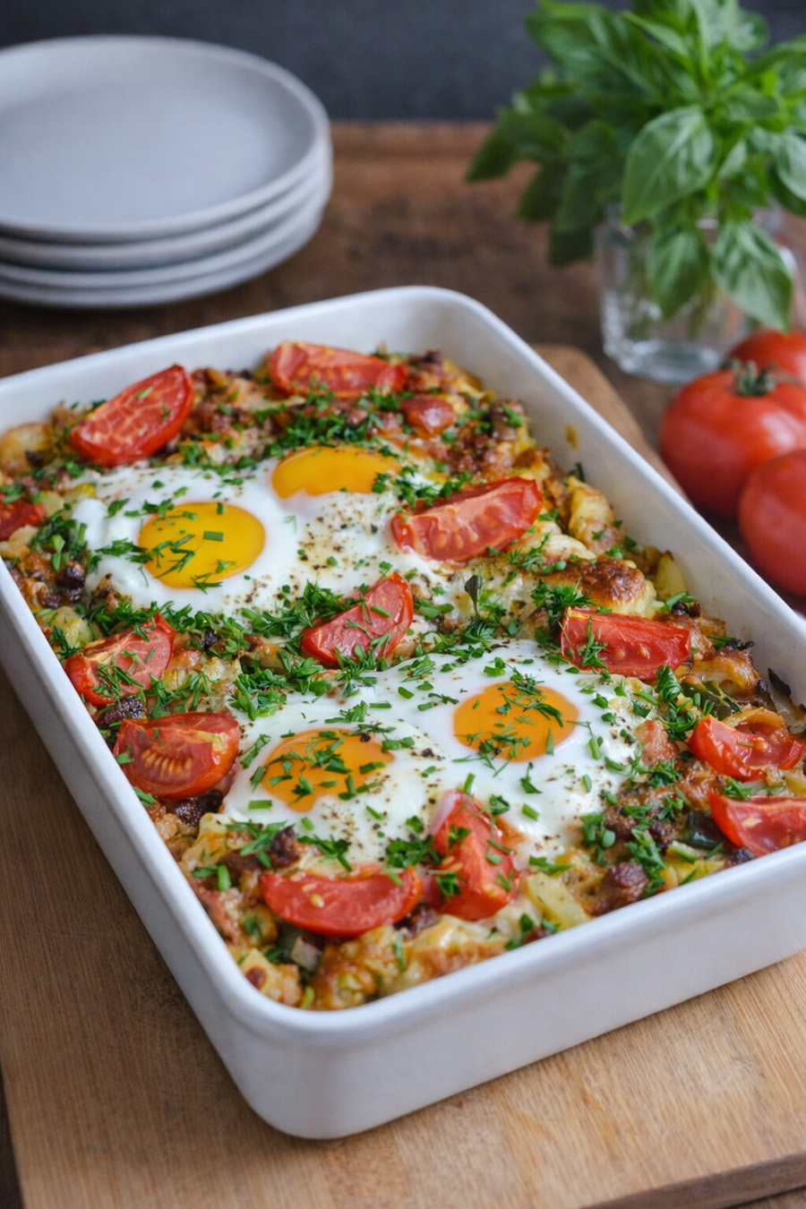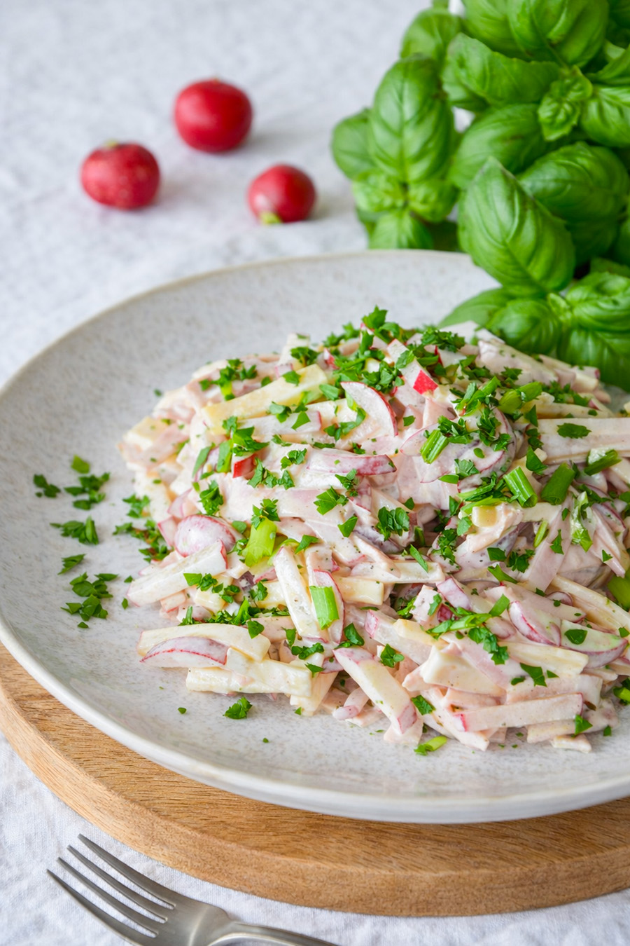 Jajka w wiosennym sosie z rzodkiewką i ogórkiem
